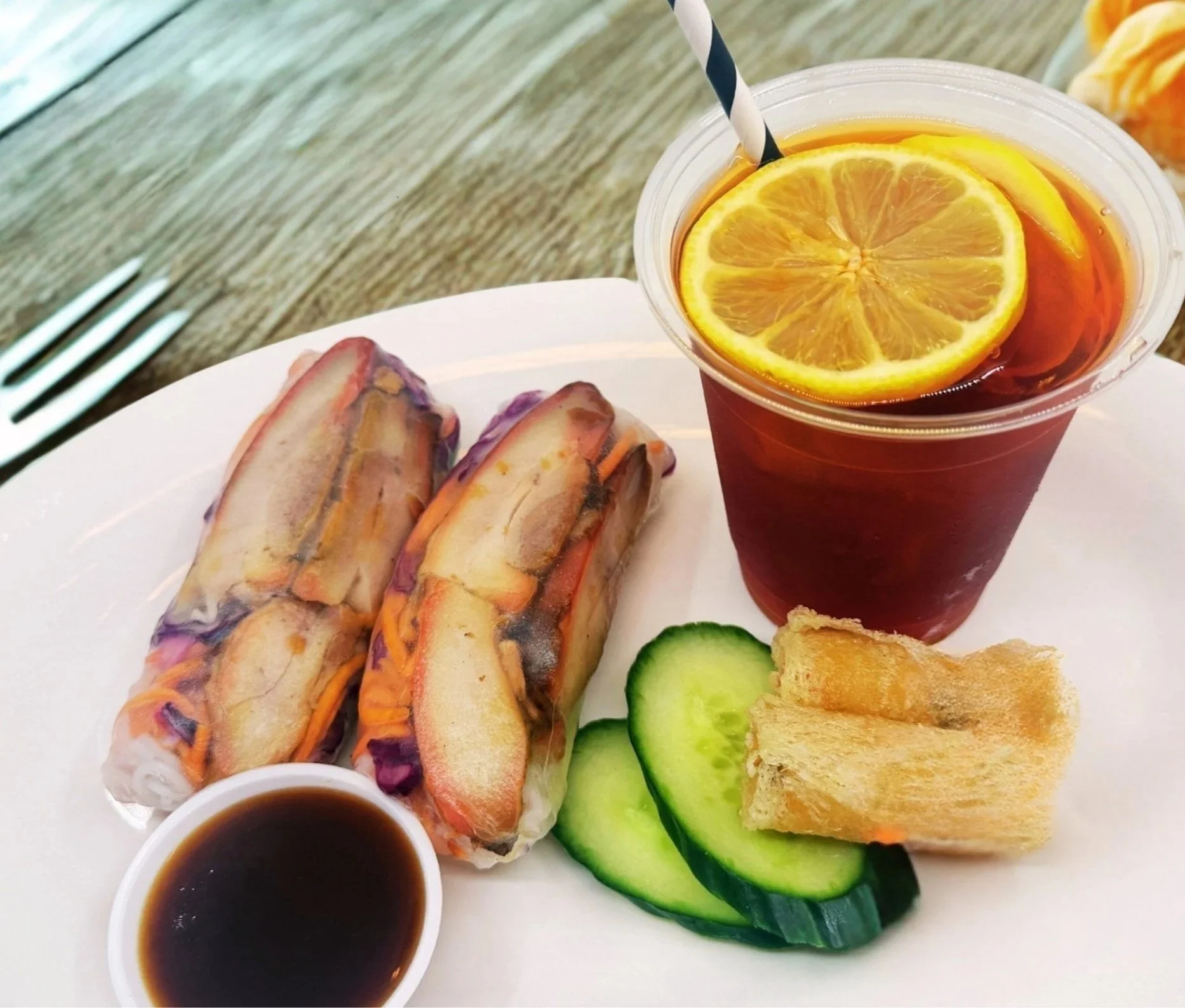 — 2 BBQ chicken rice paper rolls