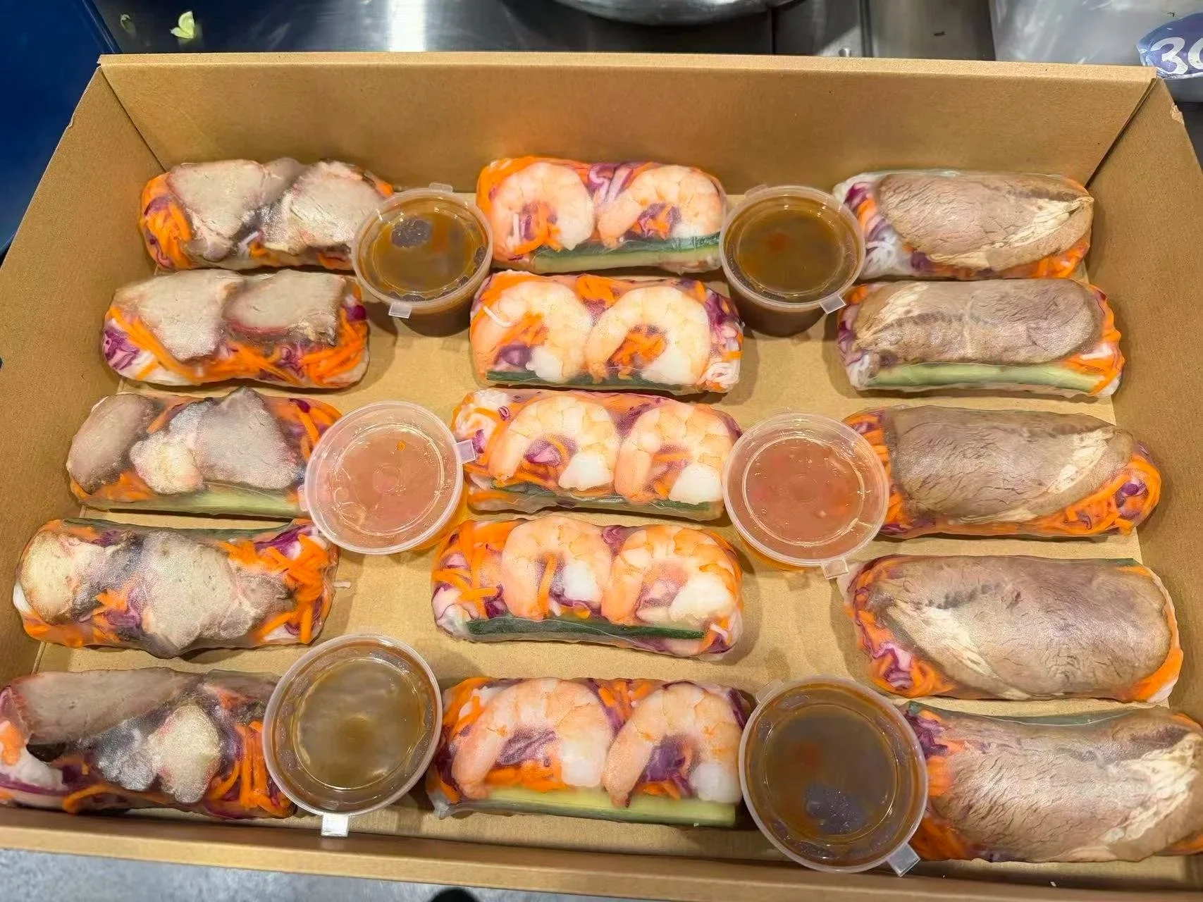 — Assorted platter of pork, beef, and prawn rice paper rolls